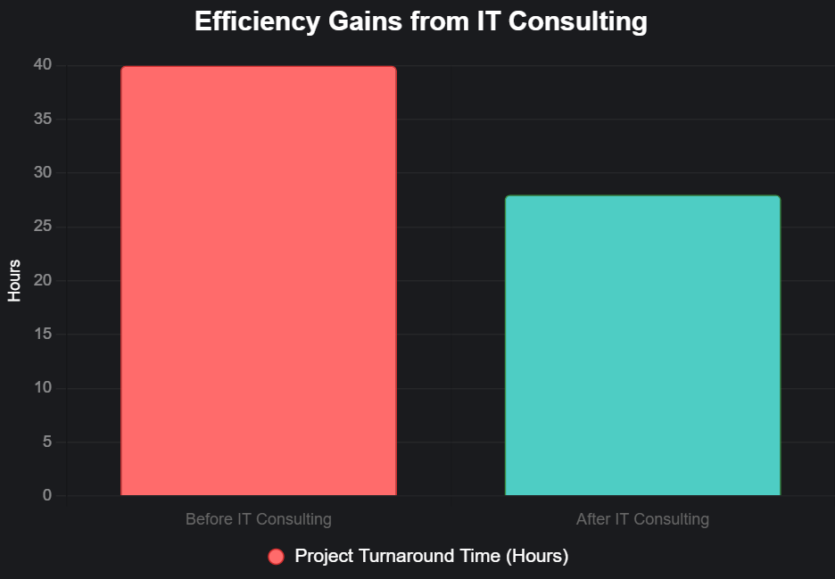 Inefficient systems can drain time and resources. Our IT consultants analyze your workflows and recommend tools to streamline operations. For example, adopting cloud-based collaboration platforms like Microsoft 365 or Google Workspace can reduce project turnaround times by up to 30%. This allows your team to focus on core objectives, such as growing your customer base. Here’s a visual representation of how IT consulting can improve efficiency :